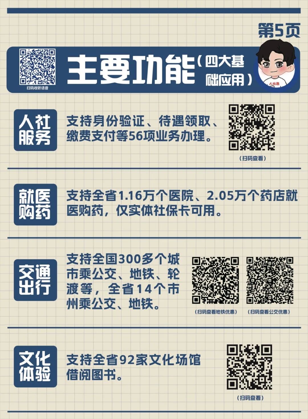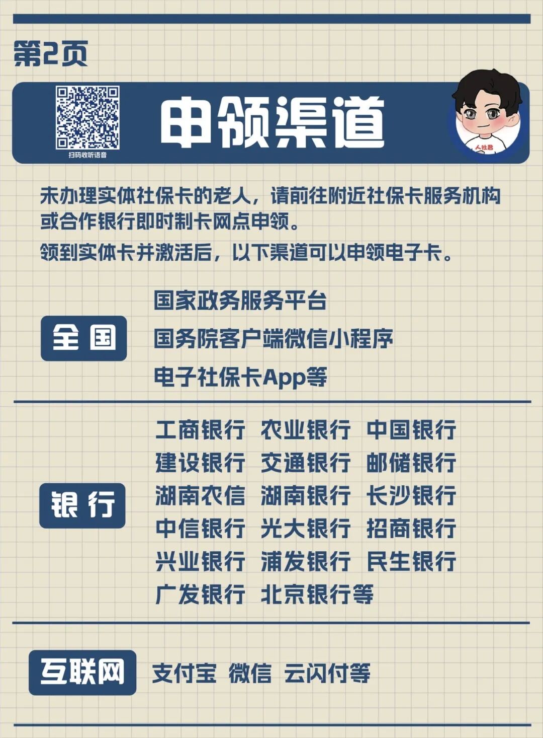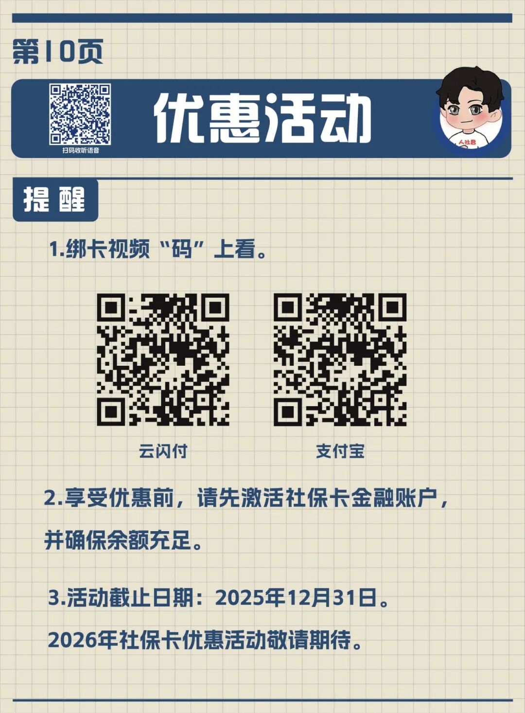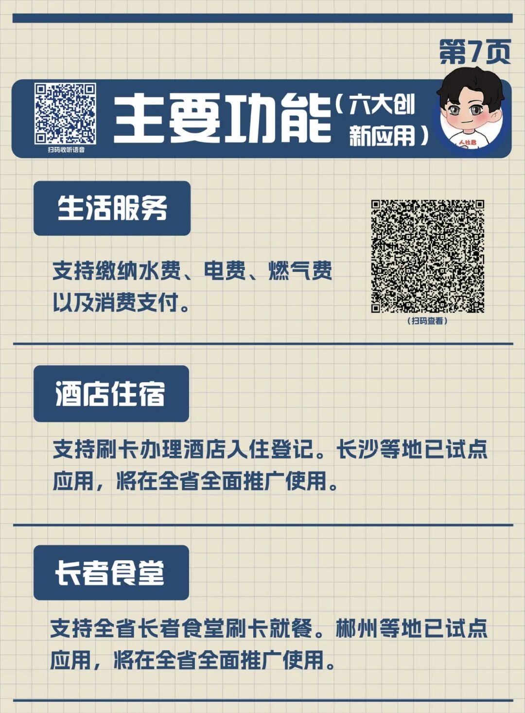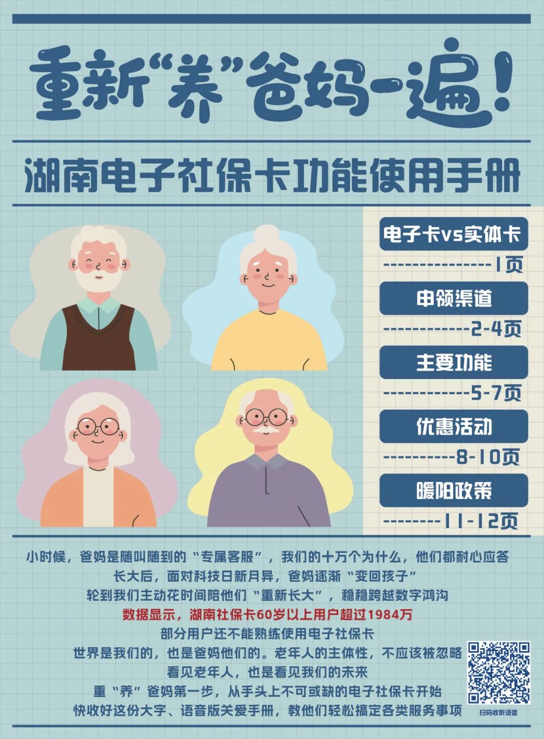 手册不仅字体放大加粗、清晰易读,每页还嵌入专属的二维码,扫码就能收听语音指导,手把手教父母操作变得简单,每一位长辈都能用卡无忧。