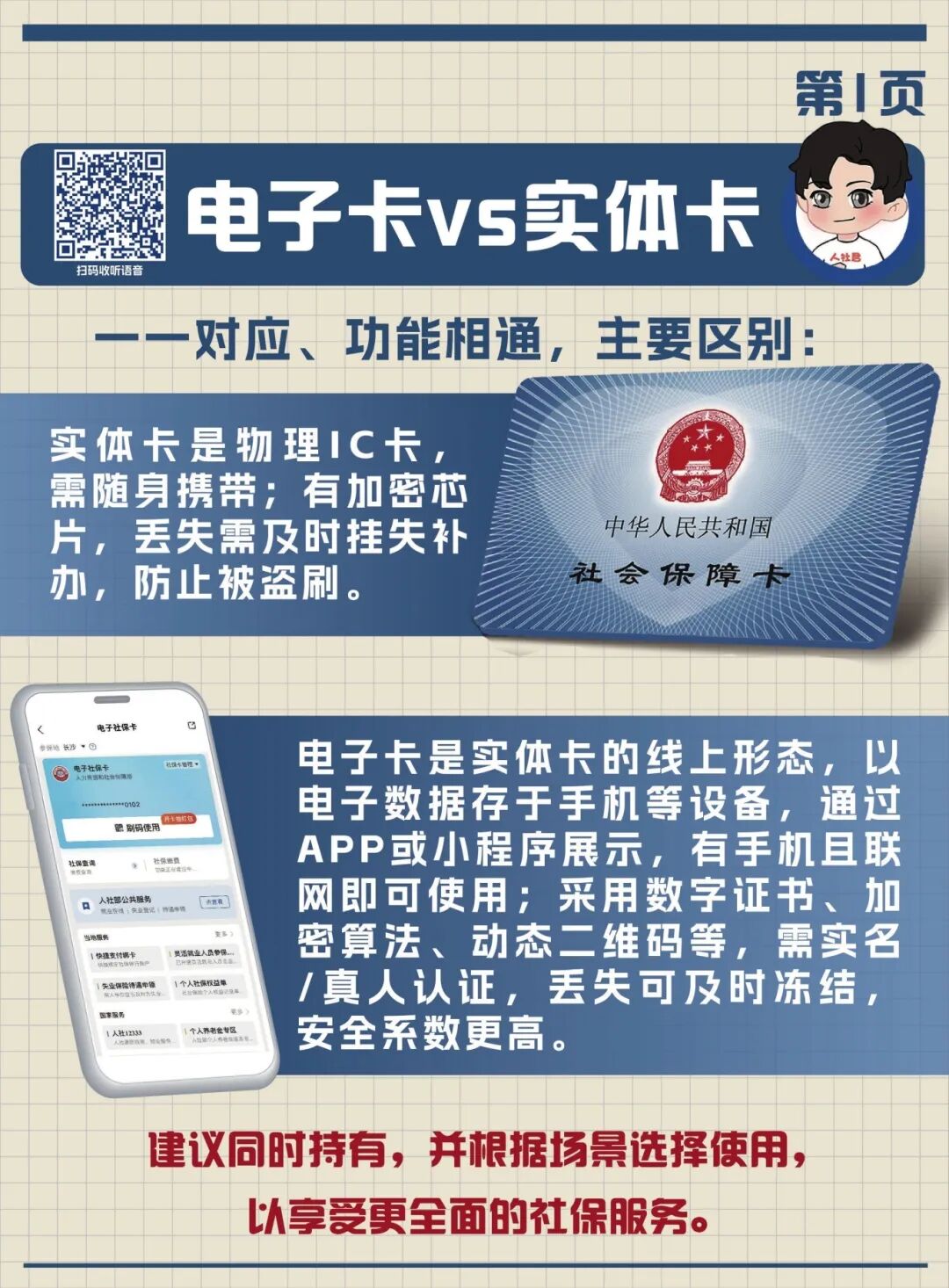 手册使用通俗易懂的语言,解读了实体卡与电子卡的区别、申领渠道、主要功能、优惠活动等内容,全是父母长辈关心的“干货”。