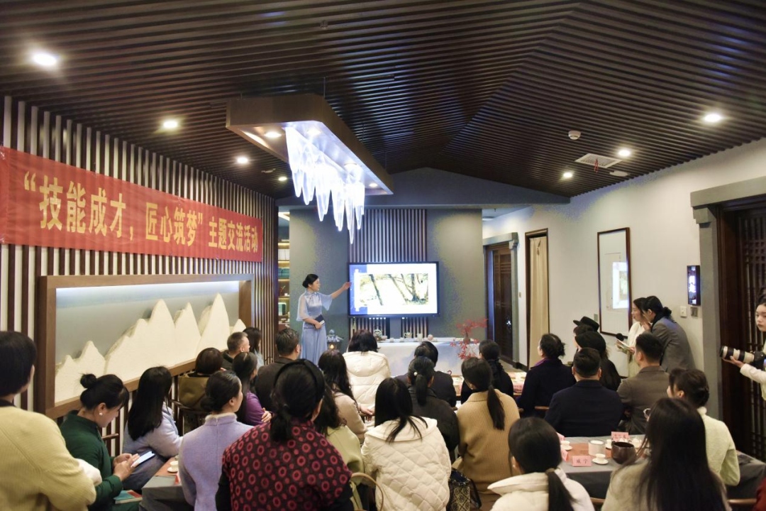 杨清在宣讲中娓娓道来自己在茶艺行业技能成才之路。从一个普通女孩到国赛冠军,她说这离不开自身的兴趣热爱,离不开家人朋友的支持,更离不开科学系统的训练。