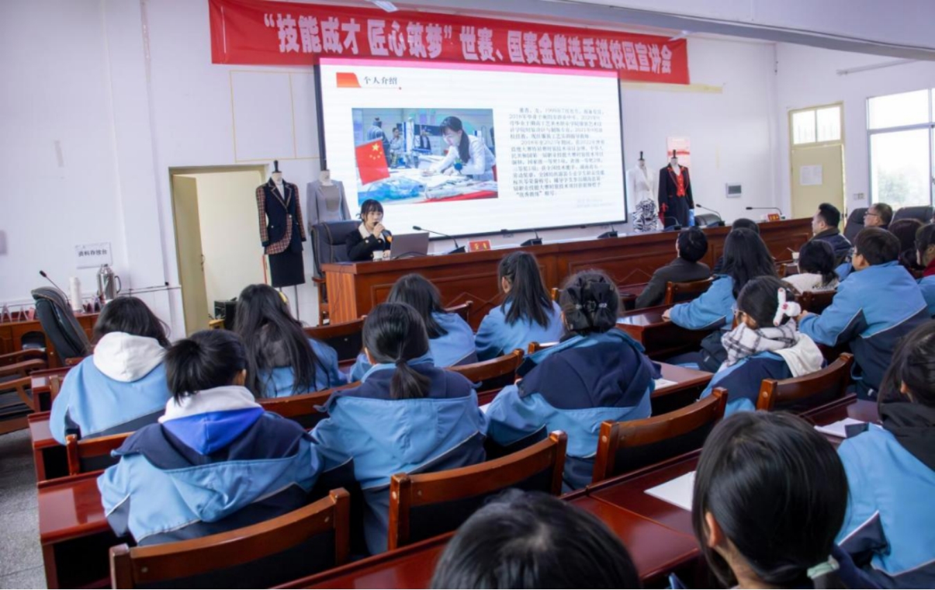 主办,湖南工艺美术职业学院、临澧县职业中专学校承办的“技能明星进企业”活动顺利举行。本次活动邀请2022年世界技能大赛特别赛时装技术项目金牌获得者、湖南工艺美术职业学院青年教师董青分享技能成才故事。湖南安福教育服装厂、普晶电子等企业及临澧县职业中专学校师生代表共150人参加。