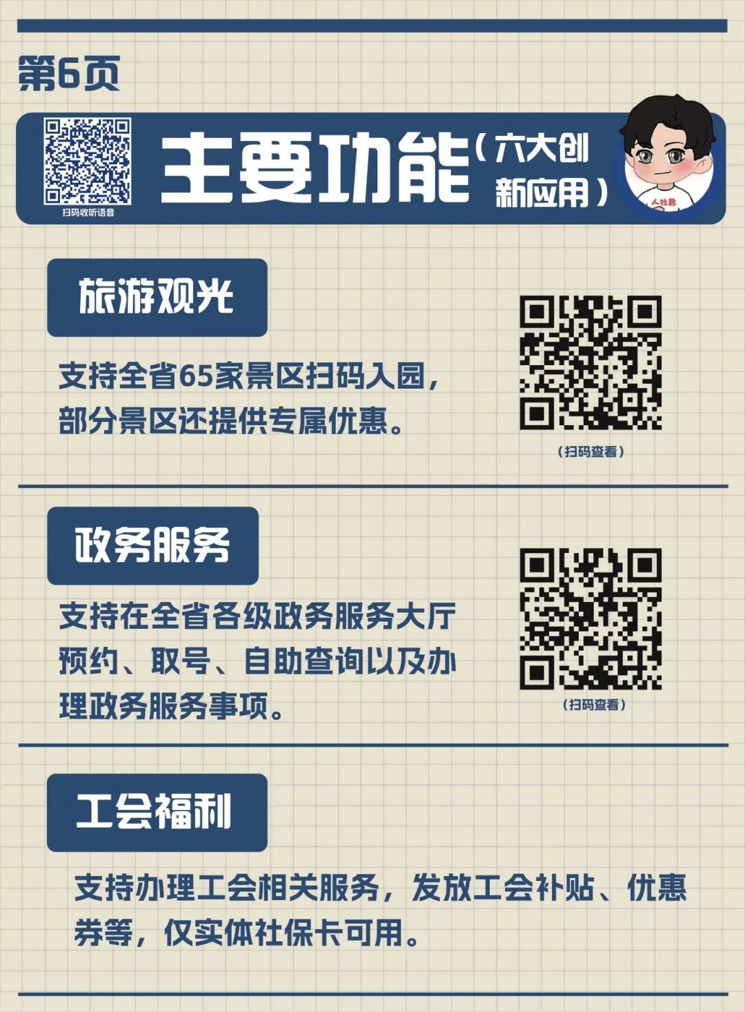 手册不仅字体放大加粗、清晰易读,每页还嵌入专属的二维码,扫码就能收听语音指导,手把手教父母操作变得简单,每一位长辈都能用卡无忧。